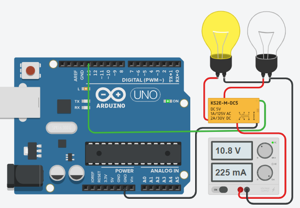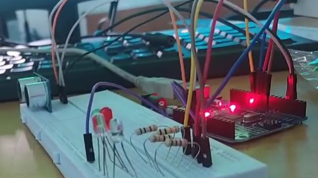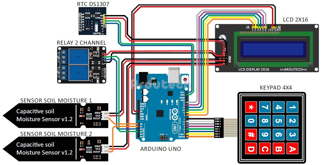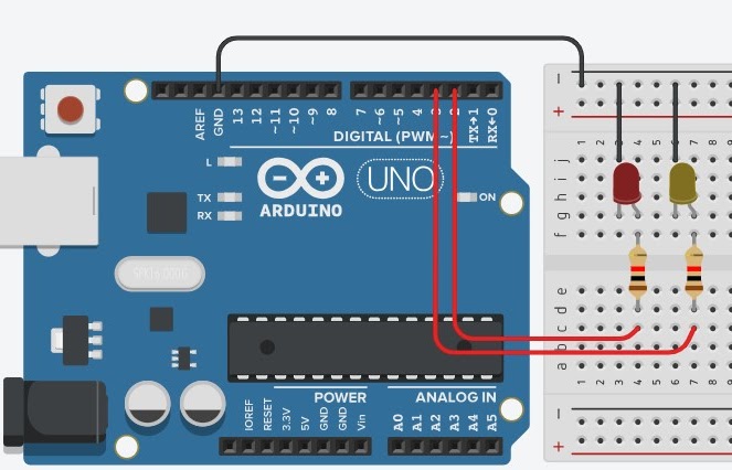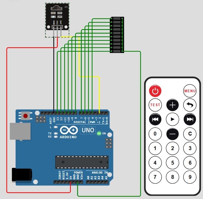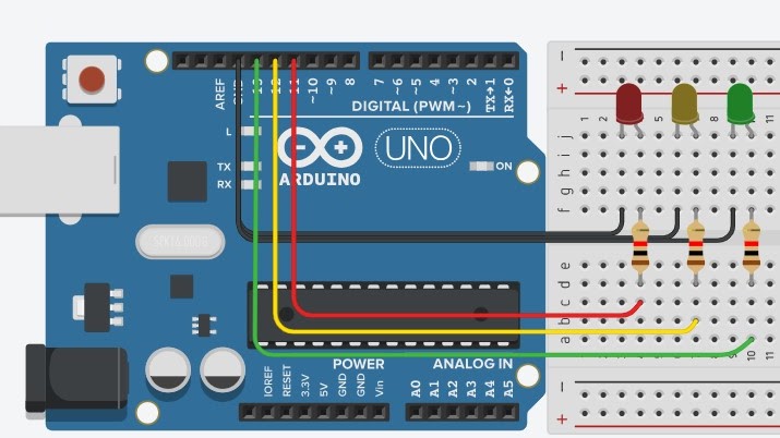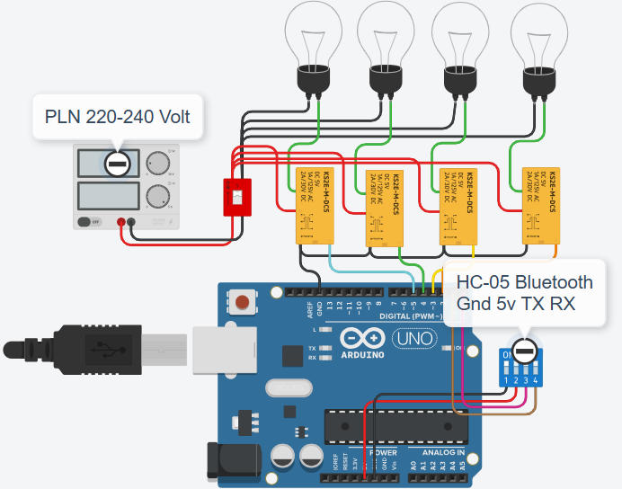 Kemudian buatlah rangkaian seperti pada gambar di bawah ini dengan konfigurasi pin :