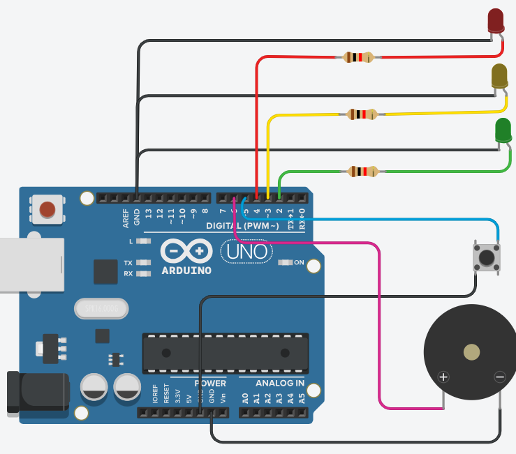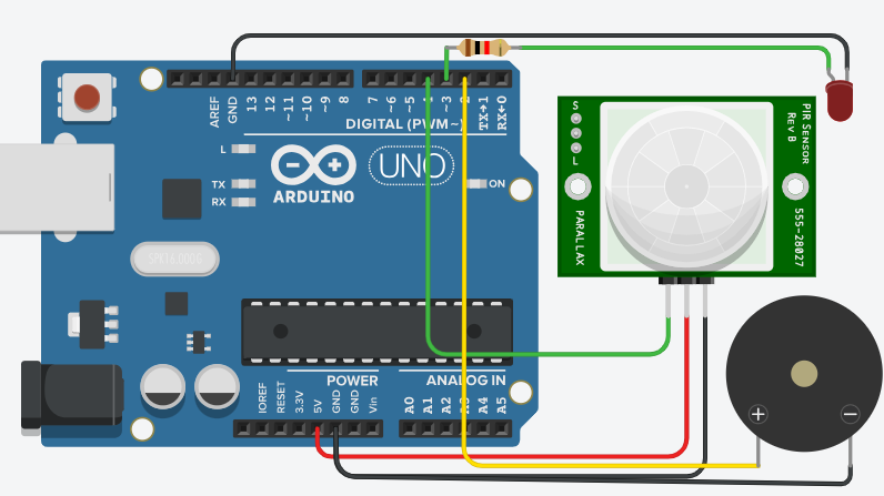 •Kabel merah/VCC ke 5v dan kedua kabel ini (kuning dan merah) dihubungkan oleh resistor 4K7 Ω.